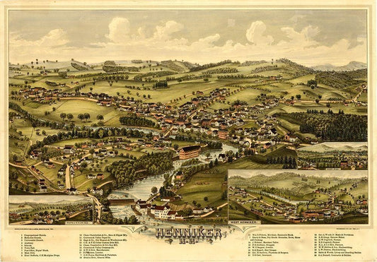 Henniker-New Hampshire 1889 White Modern Wood Framed Art Print with Double Matting by Vintage Maps