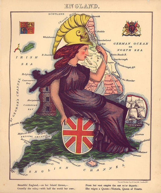Anthropomorphic Map of England White Modern Wood Framed Art Print with Double Matting by Vintage Maps