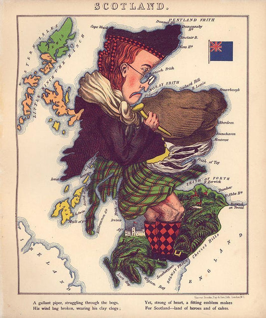 Anthropomorphic Map of Scotland White Modern Wood Framed Art Print with Double Matting by Vintage Maps