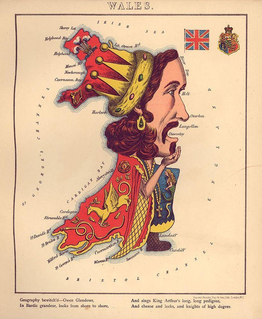 Anthropomorphic Map of Wales White Modern Wood Framed Art Print with Double Matting by Vintage Maps
