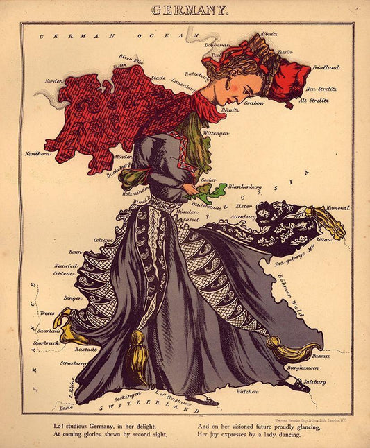 Anthropomorphic Map of Germany White Modern Wood Framed Art Print with Double Matting by Vintage Maps