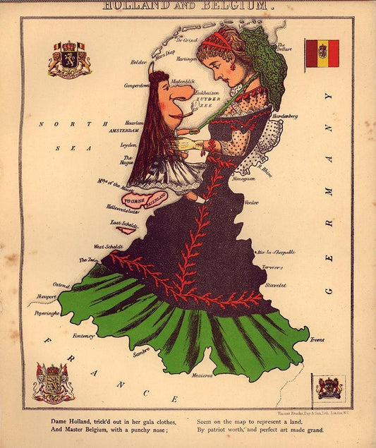 Anthropomorphic Map of Holland and Belgium White Modern Wood Framed Art Print with Double Matting by Vintage Maps
