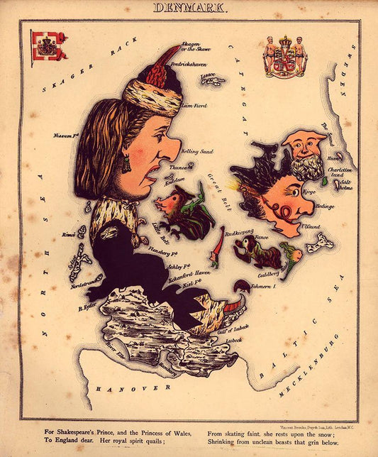 Anthropomorphic Map of Denmark White Modern Wood Framed Art Print with Double Matting by Vintage Maps