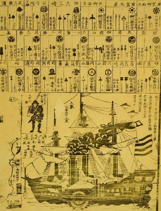 Perry arrives in Uraga-Soshu Province White Modern Wood Framed Art Print with Double Matting by Vintage Maps