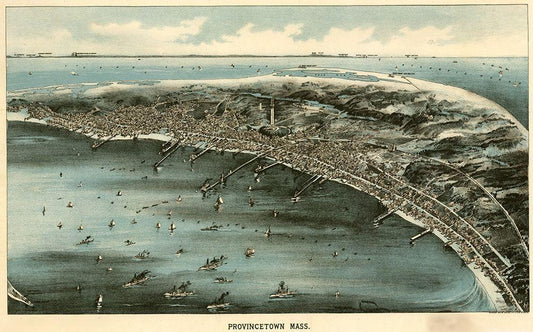Harbor with ships at Provincetown-Massachusetts 1910 White Modern Wood Framed Art Print with Double Matting by Vintage Maps