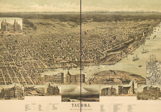 Tacoma-Washington 1890 White Modern Wood Framed Art Print with Double Matting by Vintage Maps
