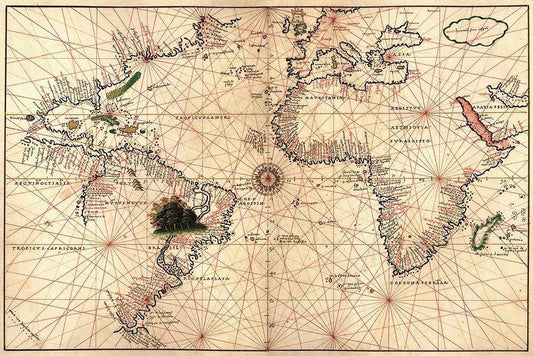 Portolan World Map White Modern Wood Framed Art Print with Double Matting by Oliva, Joan