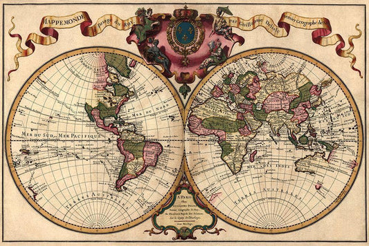 World Map Prepared for then French King White Modern Wood Framed Art Print with Double Matting by de Lisle, Guillaume