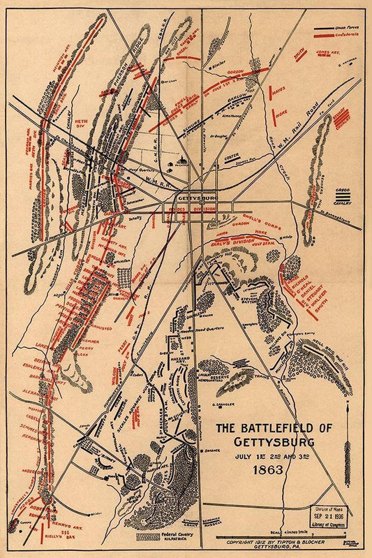 Battle of Gettysburg #1 White Modern Wood Framed Art Print with Double Matting by Unknown