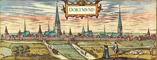 Dortmund-Germany a town in the Ruhr Industrial District now known for its Green Spaces White Modern Wood Framed Art Print with Double Matting by Hogenberg, Braun