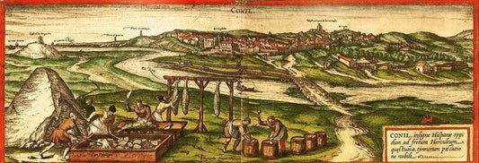 Conil de la Frontera White Modern Wood Framed Art Print with Double Matting by Hogenberg, Braun