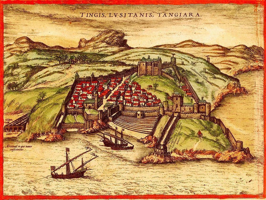 Tangiers Morocco White Modern Wood Framed Art Print with Double Matting by Hogenberg, Braun