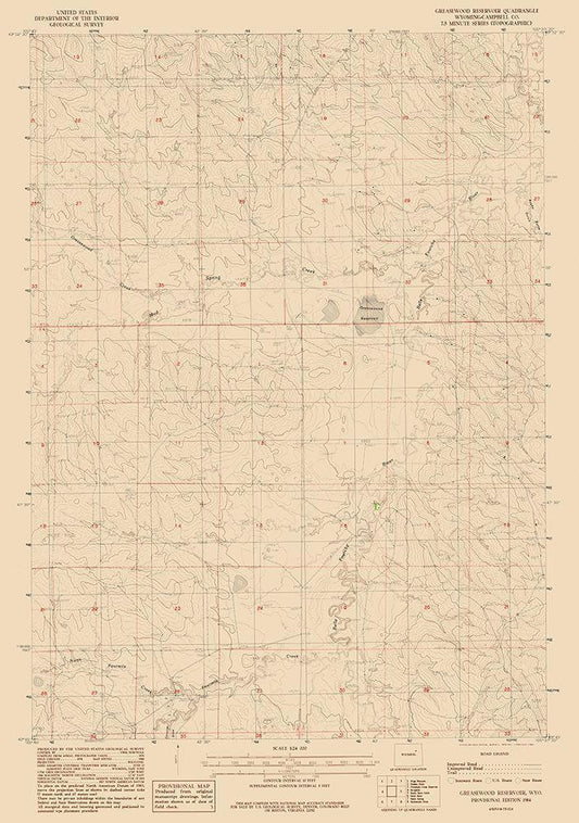 Greasewood Reservoir Wyoming Quad - USGS 1984 White Modern Wood Framed Art Print with Double Matting by USGS