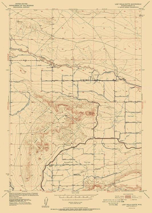 Lost Wells Butte Wyoming Quad - USGS 1952 White Modern Wood Framed Art Print with Double Matting by USGS