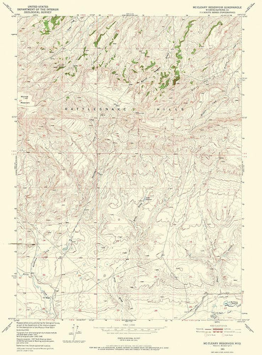 Mc Cleary Reservoir Wyoming Quad - USGS 1951 White Modern Wood Framed Art Print with Double Matting by USGS