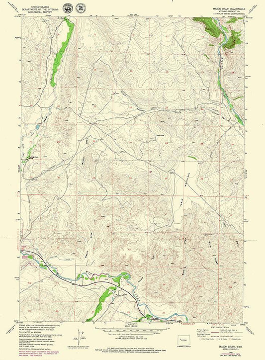 Mason Draw Wyoming Quad - USGS 1956 White Modern Wood Framed Art Print with Double Matting by USGS