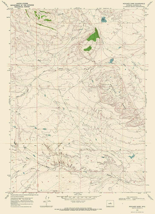 Notches Dome Wyoming Quad - USGS 1968 White Modern Wood Framed Art Print with Double Matting by USGS