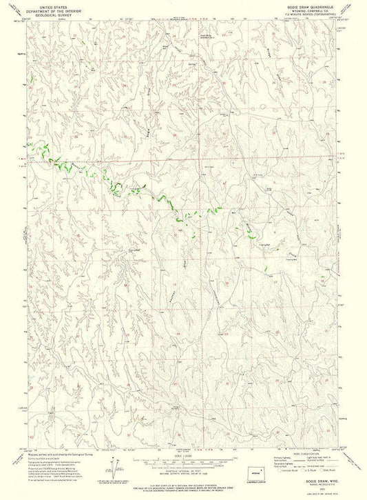 Bogie Draw Wyoming Quad - USGS 1971 White Modern Wood Framed Art Print with Double Matting by USGS