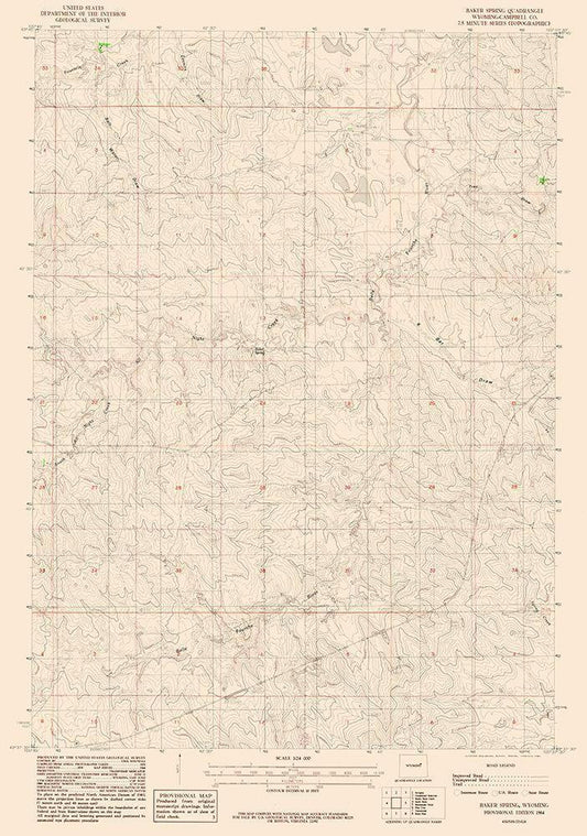 Baker Spring Wyoming Quad - USGS 1984 White Modern Wood Framed Art Print with Double Matting by USGS