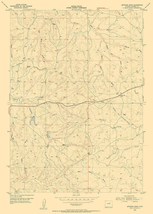 Artesian Draw Wyoming Quad - USGS 1954 White Modern Wood Framed Art Print with Double Matting by USGS