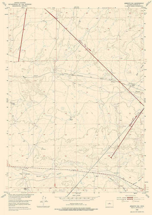 Arminto Wyoming Quad - USGS 1952 White Modern Wood Framed Art Print with Double Matting by USGS