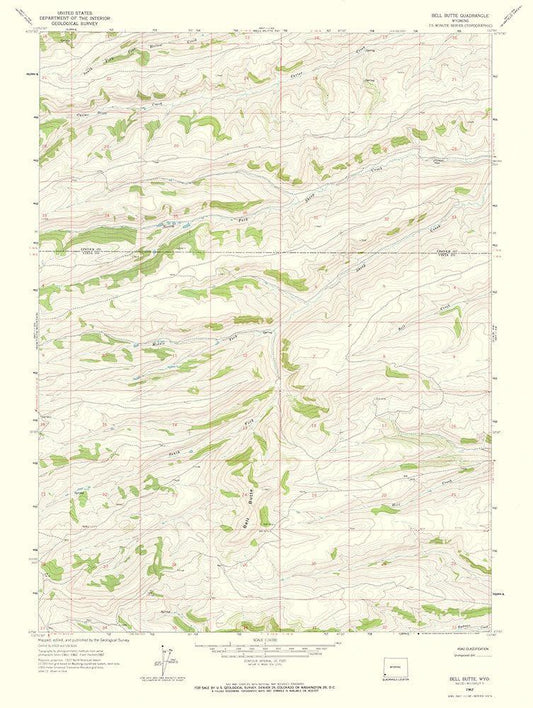 Bell Butte Wyoming Quad - USGS 1962 White Modern Wood Framed Art Print with Double Matting by USGS