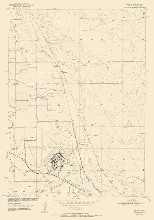 Bishop Wyoming Quad - USGS 1952 White Modern Wood Framed Art Print with Double Matting by USGS