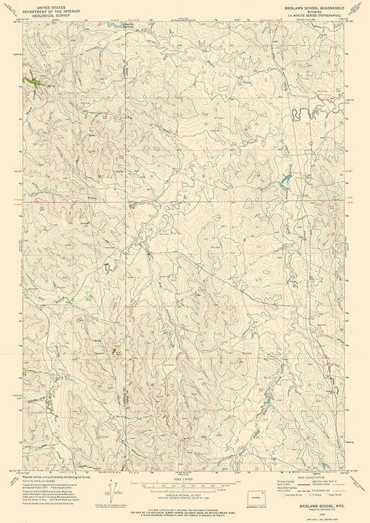 Brislawn School Wyoming Quad - USGS 1972 White Modern Wood Framed Art Print with Double Matting by USGS