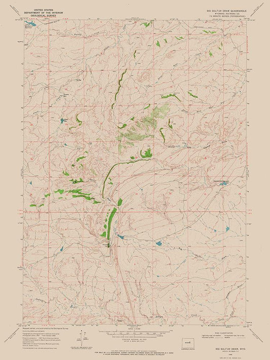 Big Sulfur Draw Wyoming Quad - USGS 1968 White Modern Wood Framed Art Print with Double Matting by USGS
