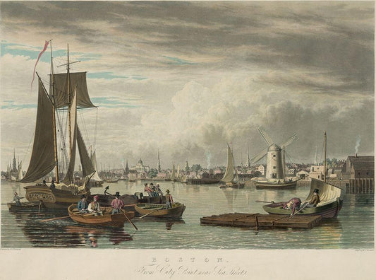 Boston from the ship house White Modern Wood Framed Art Print with Double Matting by Bennett, W J