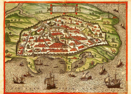 Alexandria Egypt White Modern Wood Framed Art Print with Double Matting by Hogenberg, Braun