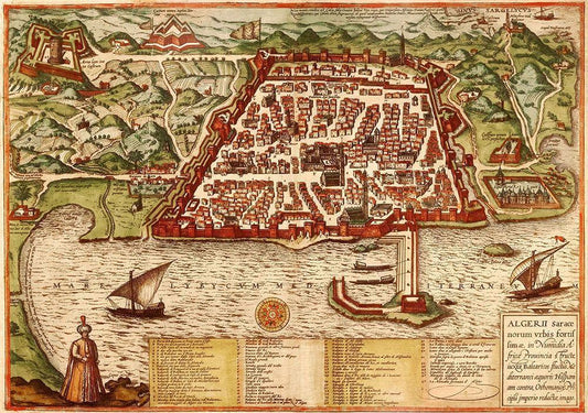 Algiers Algeria White Modern Wood Framed Art Print with Double Matting by Hogenberg, Braun
