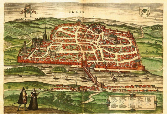 Blois White Modern Wood Framed Art Print with Double Matting by Hogenberg, Braun