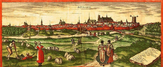 Bourges A Roman City White Modern Wood Framed Art Print with Double Matting by Hogenberg, Braun