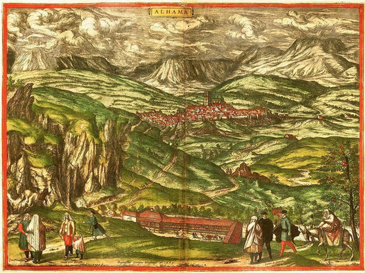 Alhama de Granada White Modern Wood Framed Art Print with Double Matting by Hogenberg, Braun