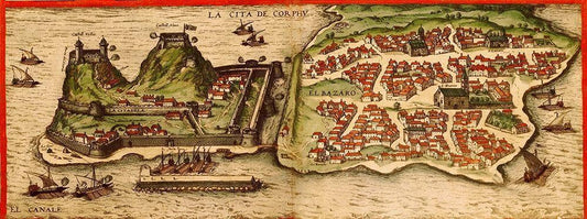 Corfu Greece White Modern Wood Framed Art Print with Double Matting by Hogenberg, Braun