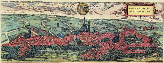 Eisleben in Saxony White Modern Wood Framed Art Print with Double Matting by Hogenberg, Braun
