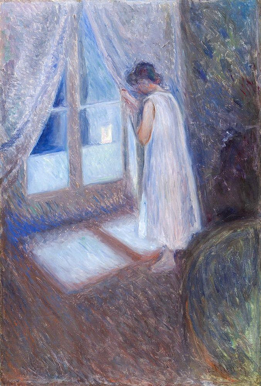 The Girl by the Window 1893 White Modern Wood Framed Art Print with Double Matting by Munch, Edvard