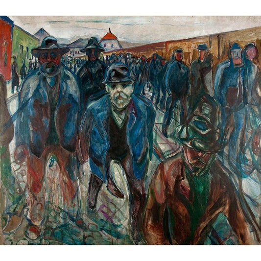 Workers on their Way Home, 1913-1914 Black Modern Wood Framed Art Print by Munch, Edvard