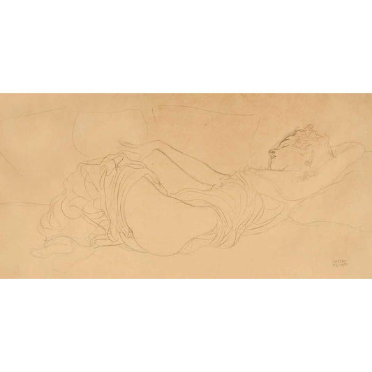 Sleeping Woman Black Modern Wood Framed Art Print by Klimt, Gustav