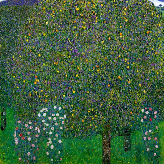 Roses Under Trees 1904 Black Ornate Wood Framed Art Print with Double Matting by Klimt, Gustav