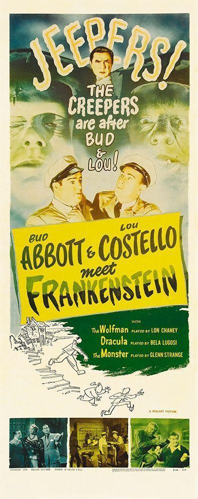 Abbott and Costello - Danish - Meet Frankenstein White Modern Wood Framed Art Print with Double Matting by Hollywood Photo Archive