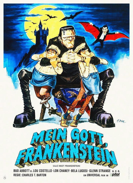 Abbott and Costello - German - Meet Frankenstein White Modern Wood Framed Art Print with Double Matting by Hollywood Photo Archive
