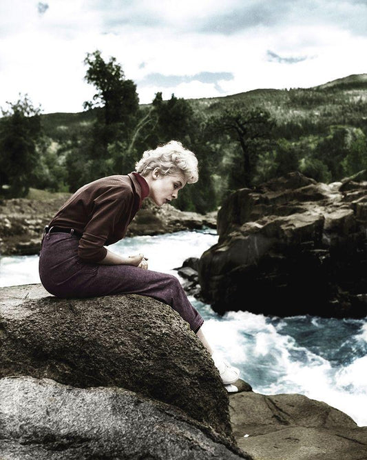 Janet Leigh - The Naked Spur White Modern Wood Framed Art Print with Double Matting by Hollywood Photo Archive