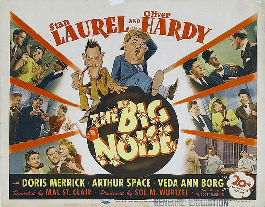 Laurel and Hardy - The Big Noise, 1944 White Modern Wood Framed Art Print with Double Matting by Hollywood Photo Archive