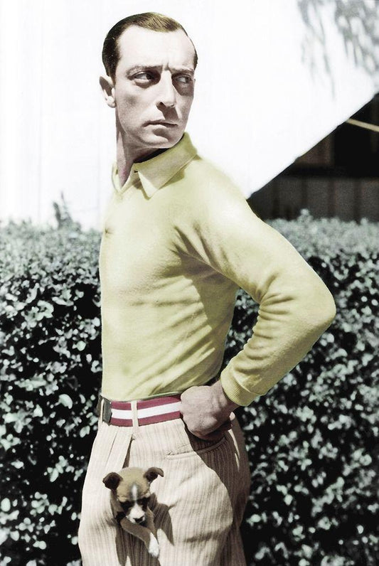 Buster Keaton White Modern Wood Framed Art Print with Double Matting by Hollywood Photo Archive