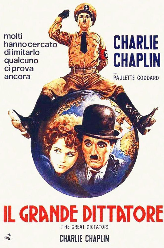 Charlie Chaplin - Italian - The Great Dictator, 1940 White Modern Wood Framed Art Print with Double Matting by Hollywood Photo Archive