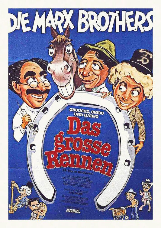 Marx Brothers - German - A Day at the Races 01 White Modern Wood Framed Art Print with Double Matting by Hollywood Photo Archive
