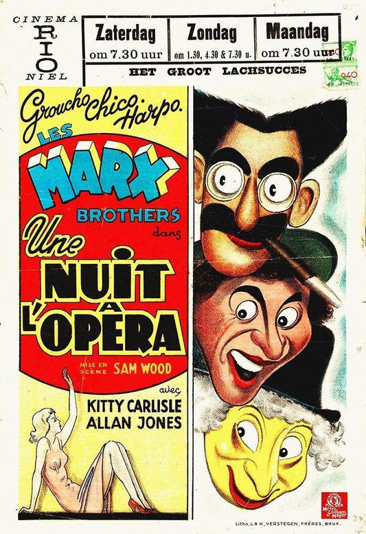 Marx Brothers - French - A Night at the Opera 02 White Modern Wood Framed Art Print with Double Matting by Hollywood Photo Archive