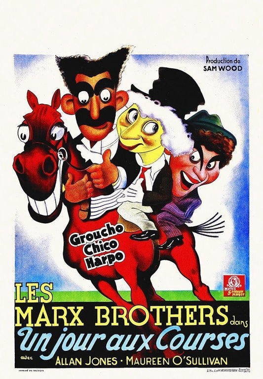 Marx Brothers - French - A Day at the Races 01 White Modern Wood Framed Art Print with Double Matting by Hollywood Photo Archive